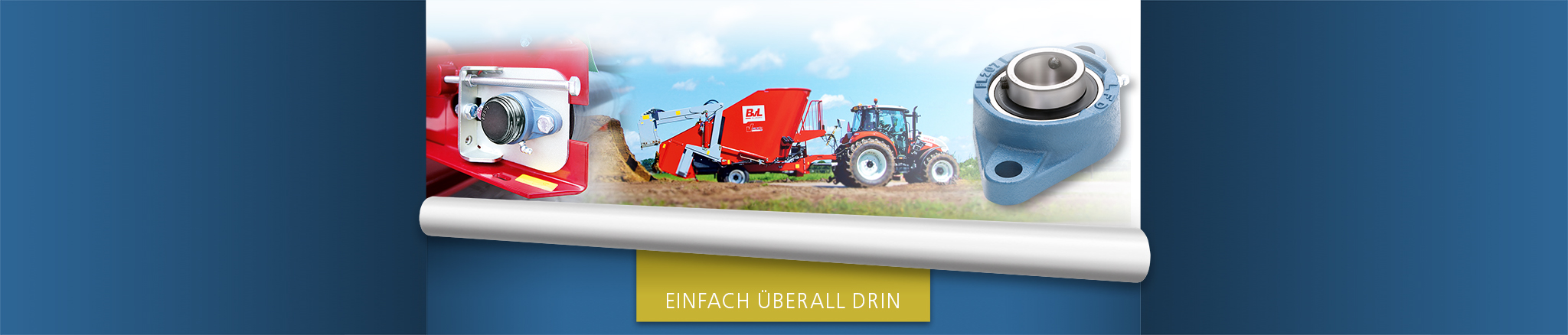 In der Agrartechnik sind Leichtlaufqualitäten, Robustheit, Tragfähigkeit, Anwendungsoptimierungen, lange Lebensdauer und selbstverständlich auch ein ausgewogenes Preis-Leistungs-Verhältnis gefragt. Es kommen verschiedene Spannlagereinheiten, Spannlager zum Einsatz: Dazu gehören unter anderem Gehäuselager, Stehlager, Flanschlager und Stahlblechlager. Bei den Lagern selbst handelt es sich ebenfalls um unterschiedliche Typen: Rillenkugellager, Zylinderrollenlager, Kegelrollenlager, Schrägkugellager, Pendelrollenlager, Pendelkugellager, Gelenklager, Gelenkköpfe.