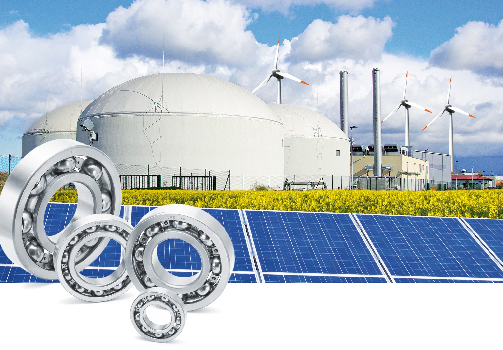 Ohne die entsprechenden Wälz- und Gleitlager ist die Nutzung von Energie aus Windkraft, Sonne und Biogas nicht möglich.