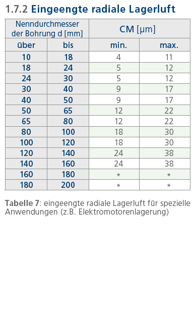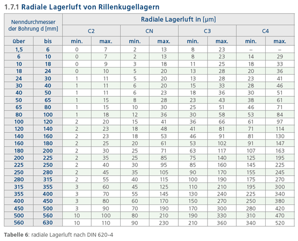 Radiale Lagerluft wird nach DIN 620-4, ISO 5753 in Gruppen unterteilt (siehe Tabelle 5 und Abb. 3).